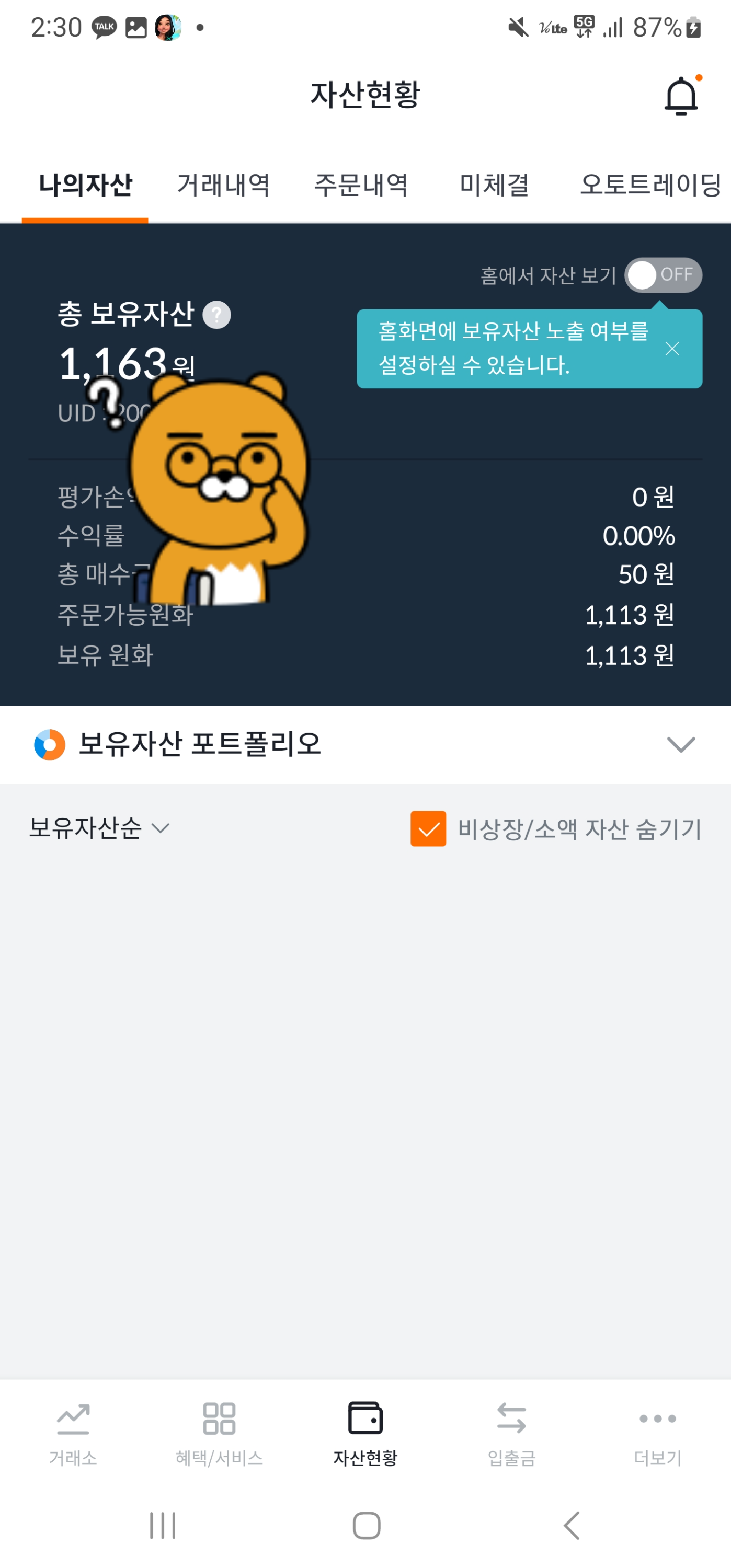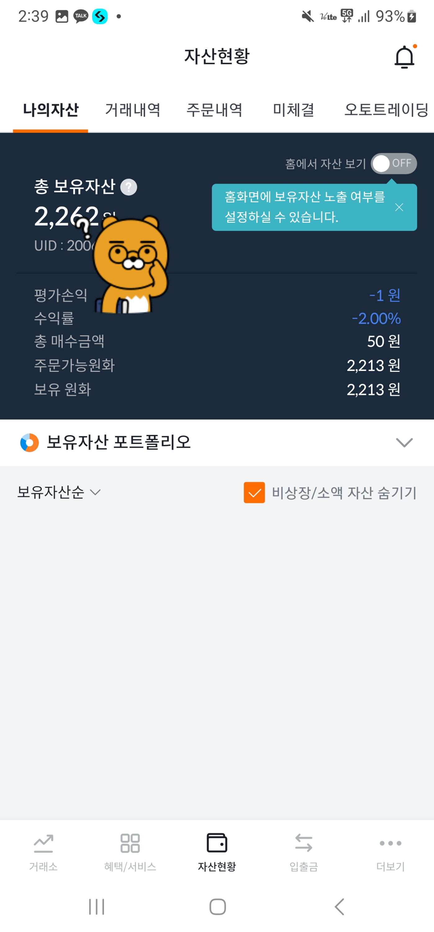 이렇게 1,800원을 벌고 나면 5,000원 정도만 추가 입금 후에