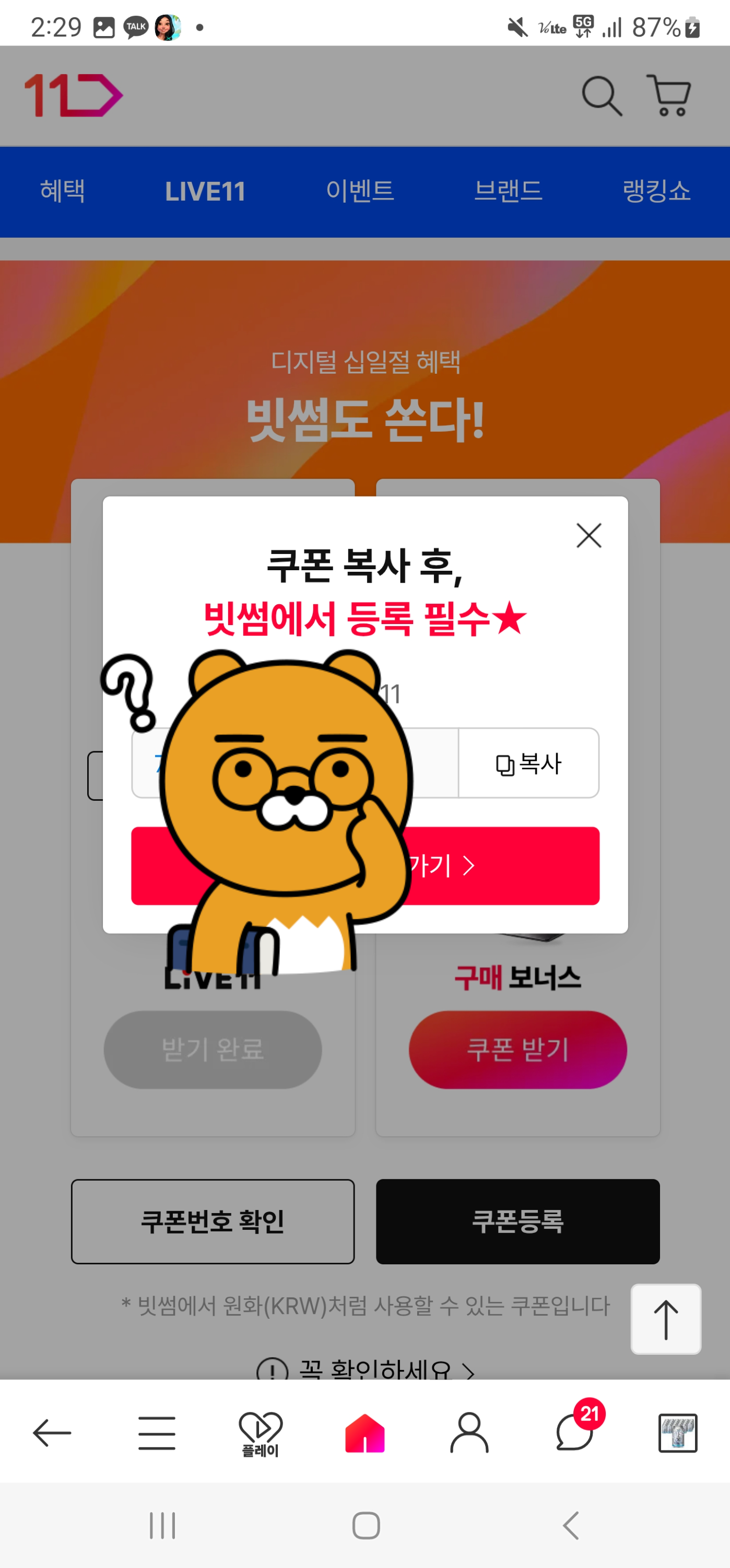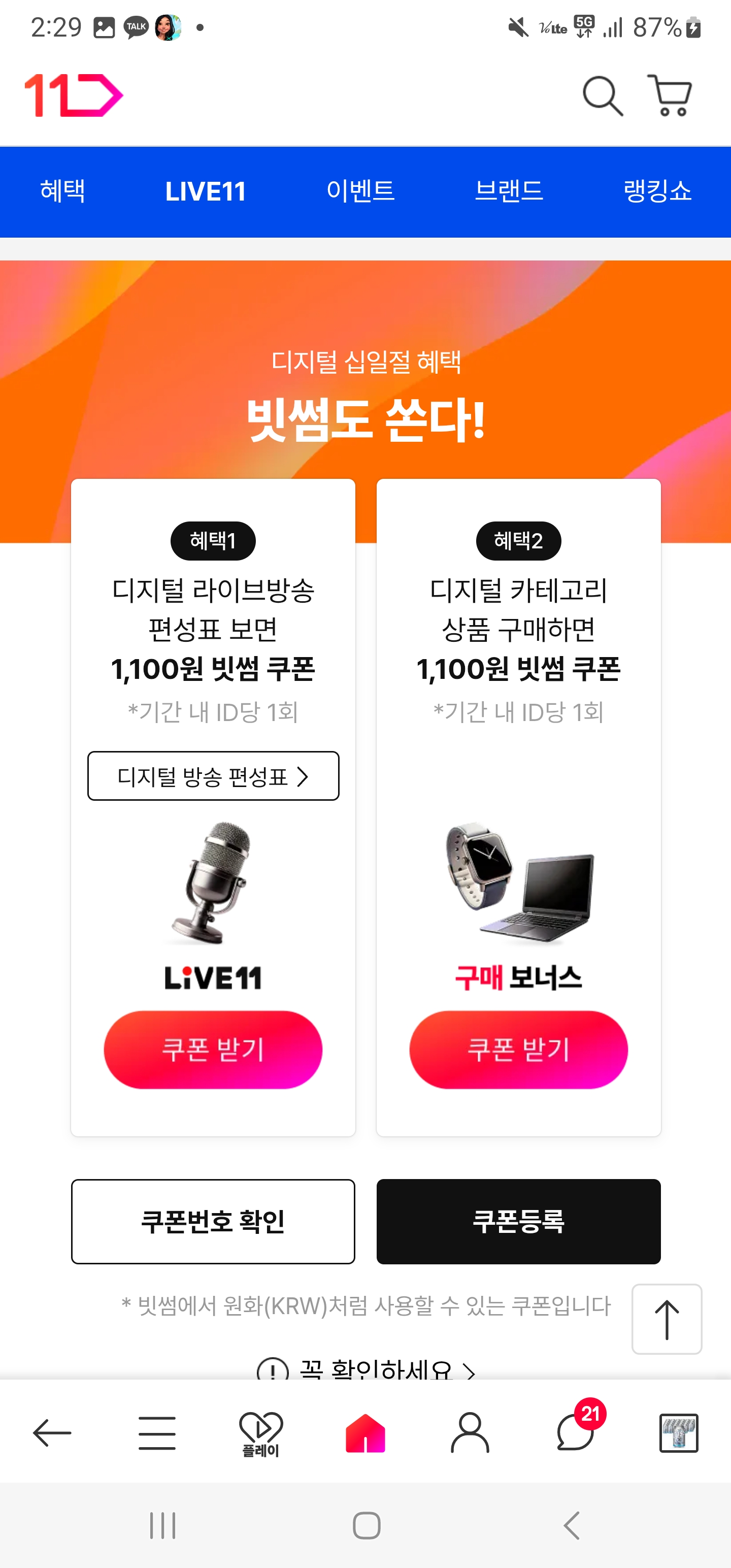 [11Live 편성표]를 구경만 하고 쿠폰 발급이 가능합니다.