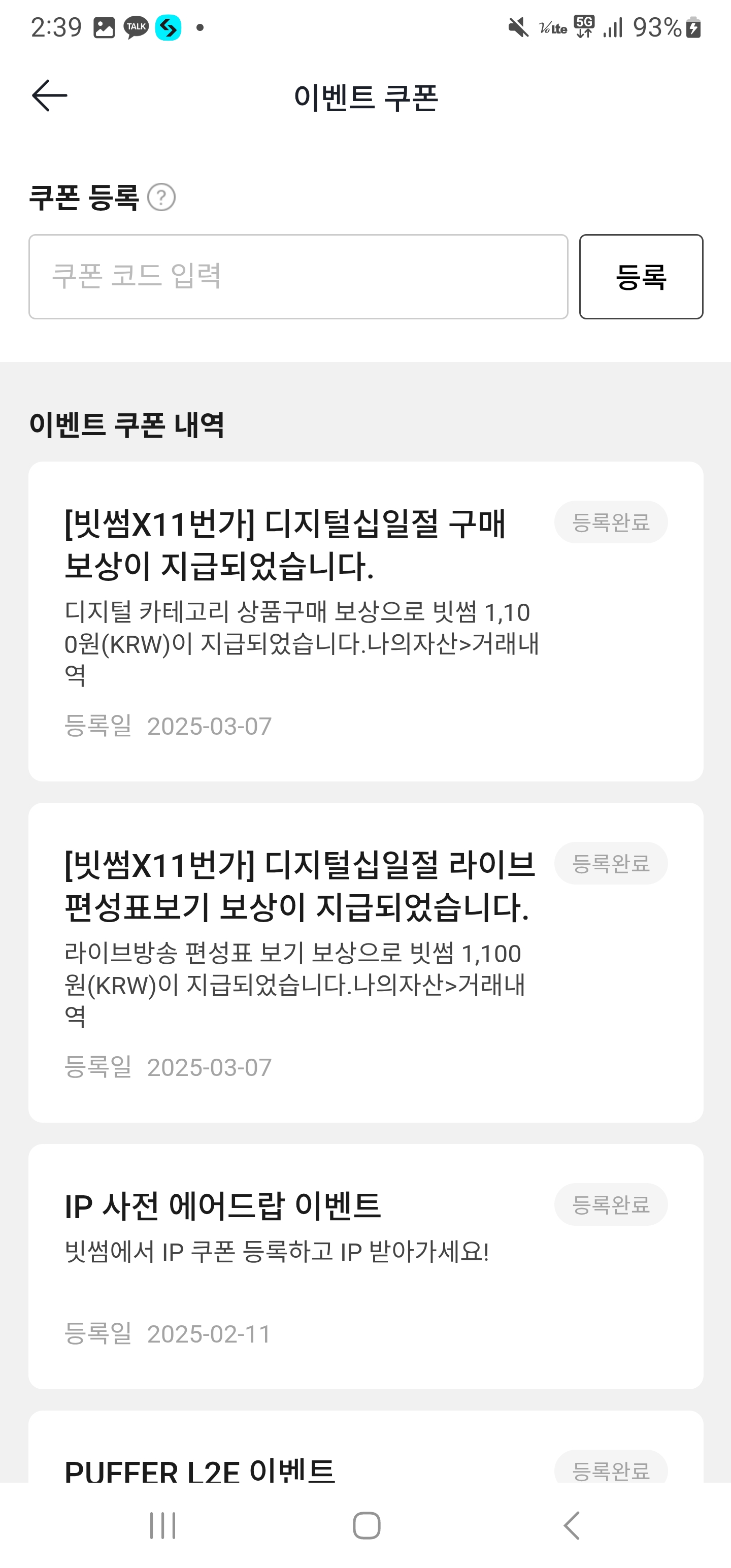 그 쿠폰을 빗썸에 등록하면 바로 1,100원이 지급되고