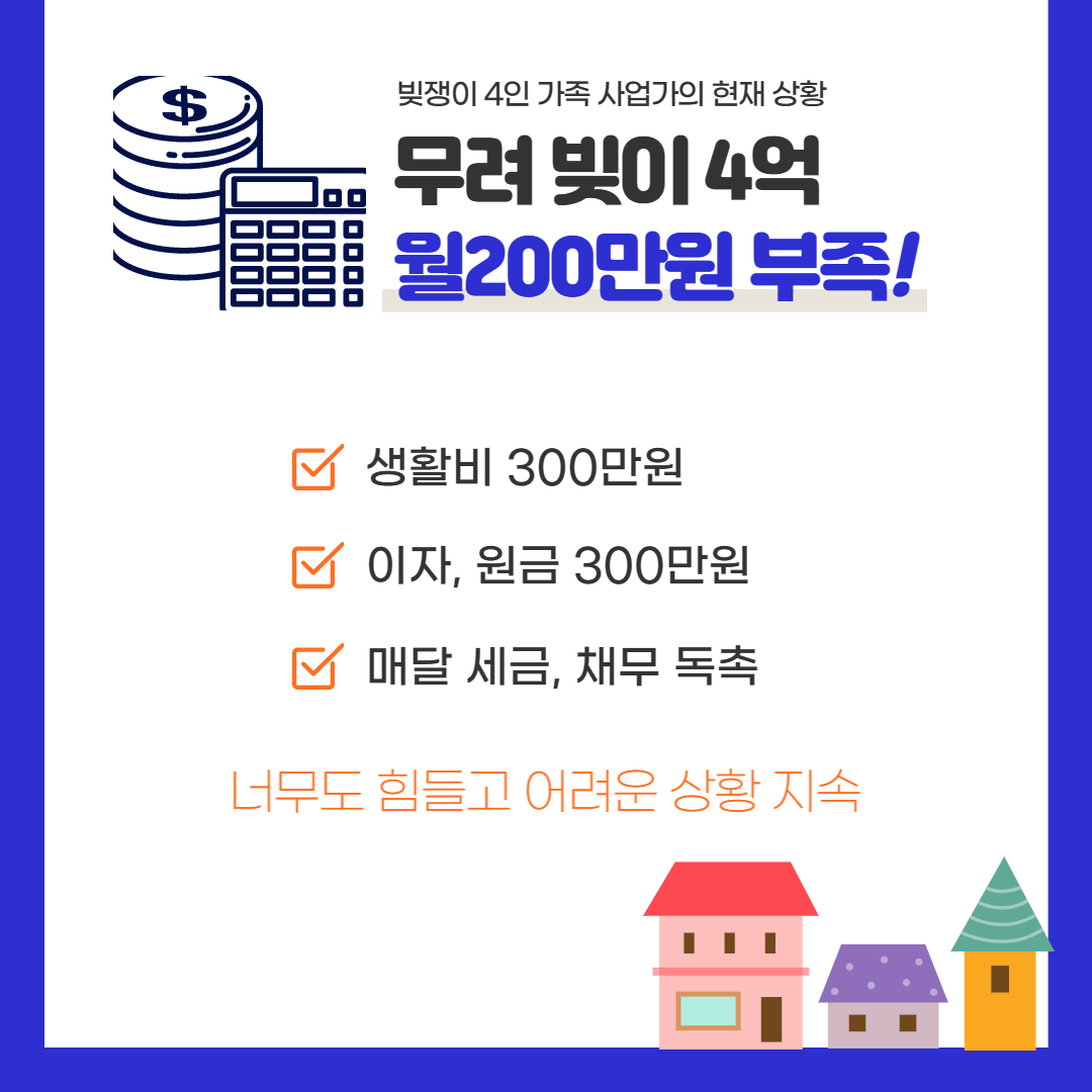 앞서 말씀드렸듯 사업 실패로 인해 많은 빚에 허덕이고 있습니다.